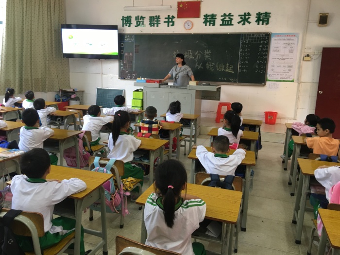 课堂上教师寓教于乐,扎实开展环保教育,教师通过丰富多样的方式为学生传授垃圾分类知识,让学生了解垃圾分类的好处。有的班级教师以提问、小游戏等多种教学手段,生动地为学生们展现如何区分可回收垃圾、有害垃圾、厨余垃圾、其他垃圾;有的班级教师以实际事例向学生展示如何让“废物”得以再利用;有的班级整个教室充满了欢声笑语,学生的注意力被幻灯片里生动形象、充满童趣的垃圾分类知识讲解所吸引,他们聚精会神观地听教师宣讲……
