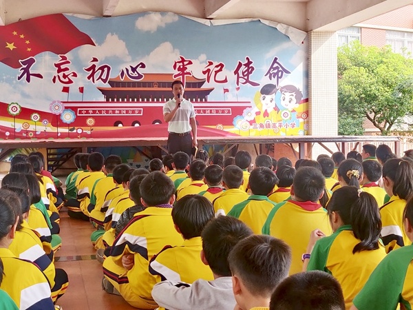 黄满华校长从安全、文明、学习、爱国四个方面教育学生,人人做好自己,共同营造一个安全、文明、和谐的校园环境以及良好的学习氛围。黄校长语重心长,处处体现了人文关怀,传达了“让安全警钟长鸣,让生命之花永开不败”的良好祝愿!