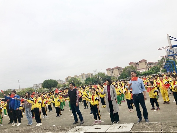 紧接着,在五(1)班同学的带领下,在一首慷慨激昂的《没有共产党就没有新中国》唱出了对党的炙热情怀,全体师生们深深沉浸在着激情澎湃的旋律声中,不由自主地挥动手中国旗,大声跟唱,把对党和祖国的热爱之情传遍心间、涌动全身,振奋歌声响彻整个高平小学,把启动仪式推向了高潮。