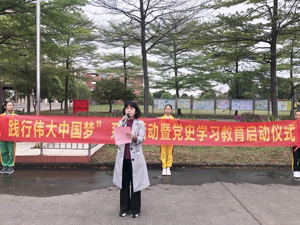 伴随着雄壮的国歌声和冉冉升起的五星红旗,启动仪式拉开了帷幕。首先,高平小学梁雪文副校长满怀激情地与全体师生回顾党的发展历程,宣读高平小学“喜迎建党100周年,践行伟大中国梦”系列活动方案,希望同学们在学党史、唱红歌、看红色电影、诵读比赛等系列活动中深入了解中华民族实现伟大复兴的百年奋斗历程。她号召学生要继承和发扬党的光荣传统和优良作风,回望过往的奋斗路,眺望前方的奋进路,把党的历史学习好、总结好,把党的成功经验传承好、发扬好,成为新时代好少年。