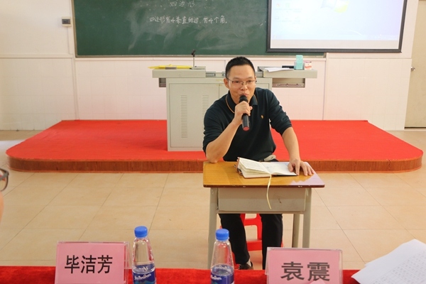 最后,三角镇教育与体育事物指导中心的袁震老师对此次说课比赛作了详细中肯的点评。他首先肯定了高平小学的前期准备工作,肯定了本次比赛所获得的有效成果,还提出了说课是人才评估的重要环节,强调全体教师要明白说课的重要性。
