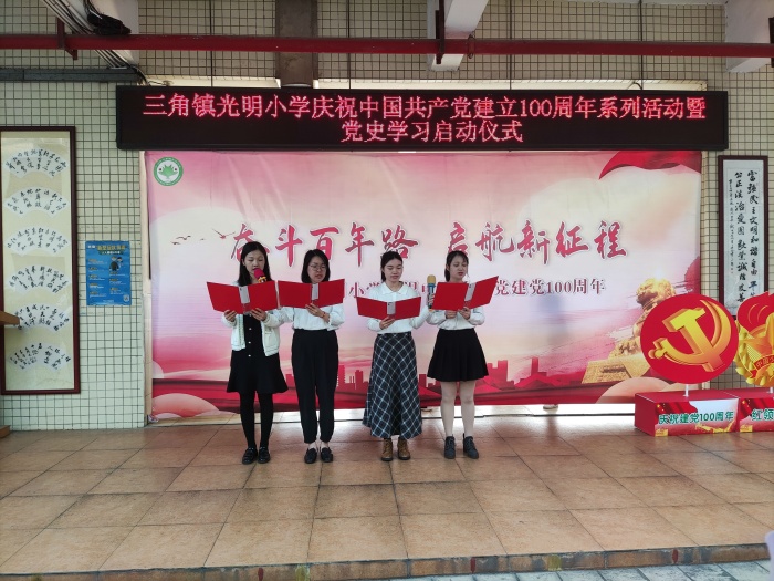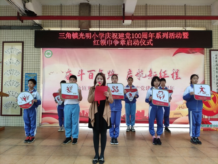 三角镇光明小学庆祝中国共产党建党100周年暨红领巾争章活动启动仪式发布时间:2021-03-11 10:07 信息来源:本网站 浏览次数:0