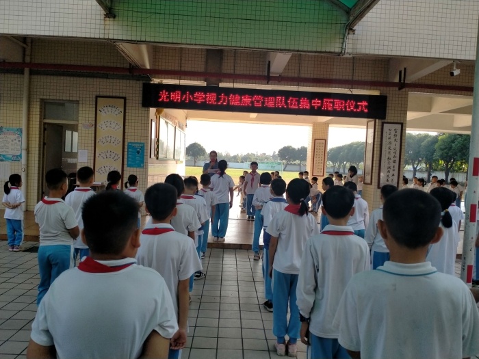 儿童是祖国的未来,眼睛是心灵的窗户,保护眼睛应当从小做起。为进一步培养学生良好的用眼护眼习惯,三角镇光明小学制定了预防近视工作实施方案,组建了学生视力健康管理队伍,并于10月12日上午,举行学生视力健康管理队伍集中履职仪式。