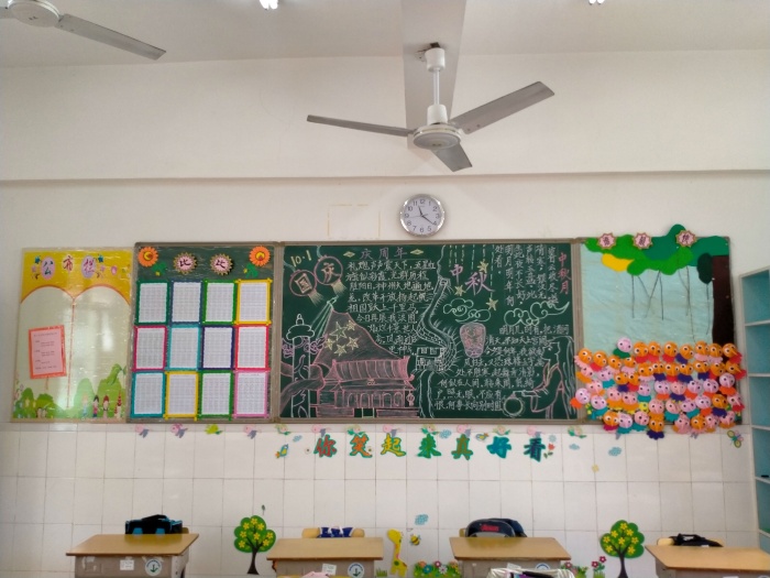 此外,光明小学还开展“迎中秋 庆祝国庆”黑板报评比活动,各班黑板报都做到了主题鲜明、版面醒目、结构合理、图文并茂、设计美观。他们有的赞美花好月圆的中秋情思,有歌颂中华人民共和国成立71周年以来祖国的巨大变化,有的在宣传国庆的相关知识,有的礼赞国庆诗篇等。每个版头、插图、花边、线条都体现出老师和同学们的心血,充分展现了师生们积极向上的精神文明风貌,营造了浓郁的校园文化氛围,表达了师生们对传统佳节和祖国的热爱。9月30日,通过评委们的认真评比,六个班级脱颖而出被评委一等奖。