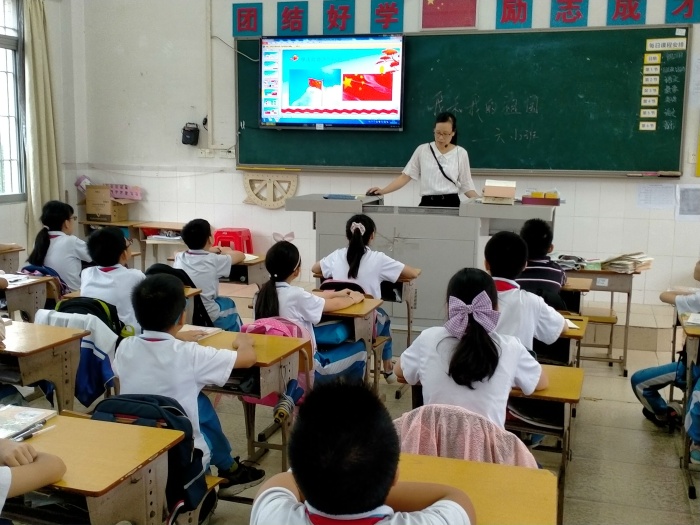 9月28日,光明小学开展“我和我的祖国”主题班会课。班会课上,同学们在跟着音乐一起唱起《我和我的祖国》,那激情洋溢的歌声唱出孩子们心中对祖国的热爱,唱响了孩子们对祖国深深地祝福。有的同学代表讲述了爱国主义故事,给大家推荐爱国主义书籍,并结合爱国典型人物和事例讲述自己的所学所感。他们在叙述对祖国的真情实感时,下定决心要为祖国的明天更加繁荣昌盛而努力学习。