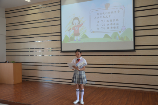 段校长致辞后,教师代表陈玉明发言,陈老师对同学们的成长、进步以及取得的成绩给予了充分的肯定并寄予殷切期望:一是做个真正的读书人;二是做一个乐观向上、心胸开阔的人。要有海纳百川的胸襟,永远追求积极的人生。
