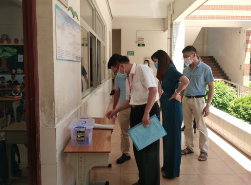 6月29日上午,中山市教育督导组成员火炬开发区教育事务指导中心教研专干詹必国、火炬开发区一中校长刘利民、浪网中学副校长邱慎明一行到三角镇蟠龙小学检查疫情防控常态化下复学复课工作。