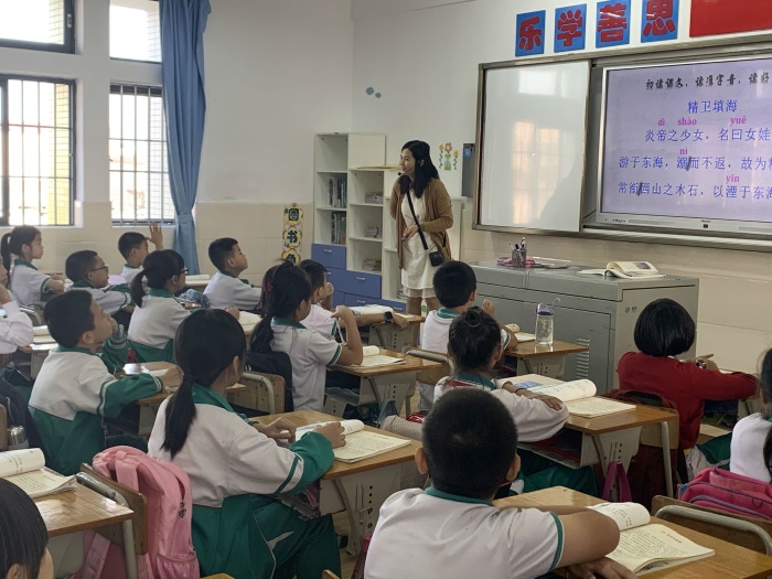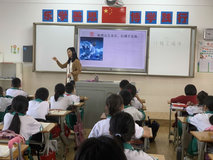 本次骨干教师示范课活动是余燕老师执教,内容是四年级语文上册《精卫填海》。在本节课中,余老师教学流程环环相扣、教学技巧娴熟自然、课堂气氛和谐融洽,充分展现出语文课堂的精彩,使听课教师们从中得到了很好的启示,纷纷表示受益匪浅。在教学片段中,余老师引导学生充分利用注释及生活经验,引导学生通过联系上下文理解文言文,并引导学生在感悟神话故事的神奇性过程中,通过对课文内容的解读,从而发现神话故事的特点——神奇。