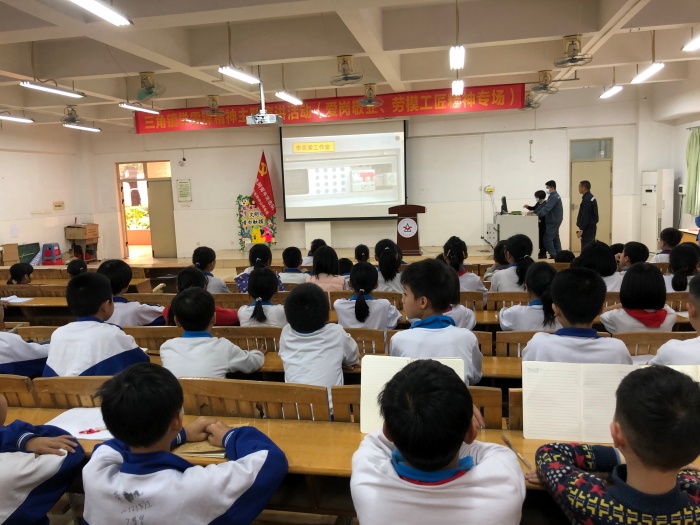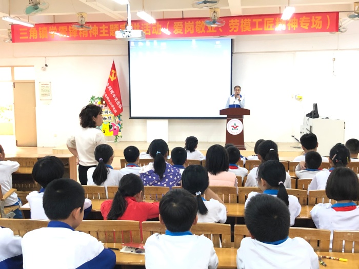 “人的生命是有限,为人民服务是无限的。我要把有限的生命投入到无限的为人民服务当中去。”雷锋同志是新中国成立后劳模工匠的杰出代表人物,他的事迹和精神影响着一代又一代的中国人。3月是学雷锋纪念月,为弘扬雷锋热爱党、热爱祖国、热爱社会主义的崇高理想和坚定信念,服务人民、助人为乐的奉献精神,让广大学子感受当代新雷锋爱岗敬业、劳模工匠精神及榜样的力量,三角小学特邀请三角镇社会卫生服务中心的公卫医师李嘉麟和中山市三角镇供电分局综合部主任李亮棠两位“中山好人”代表到校为师生们开展爱岗敬业、劳模工匠专场教育活动。