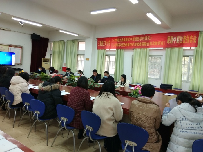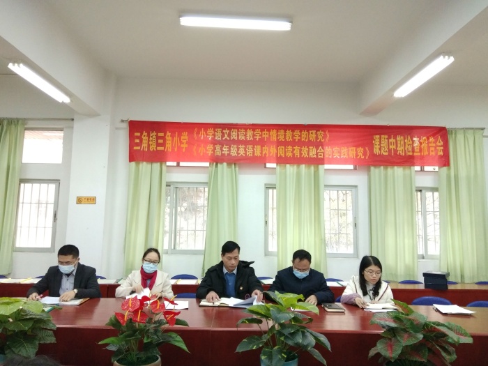 冬日是结蕾的季节,更是充满期待的时分。1月8日上午,三角小学镇级课题“小学语文阅读教学中情境教学的研究”和“小学高年级英语课内外阅读有效融合的实践研究”中期报告会在三角镇三角小学会议室举行,三角镇教育和体育事务中心梁文副主任和吴萍老师莅临指导,陈见洪校长、王辉副校长等行政,以及课题组全体成员参加了会议。