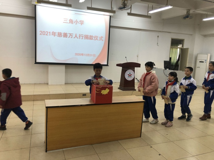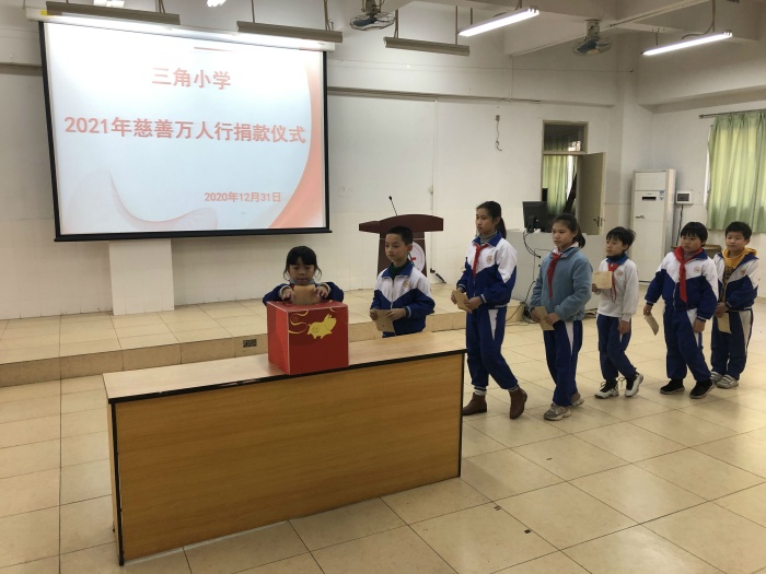 ——三角小学举行2021年慈善万人行捐款活动发布时间:2021-01-06 17:11 信息来源:本网站 浏览次数:0