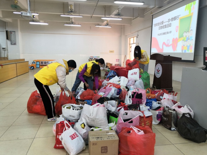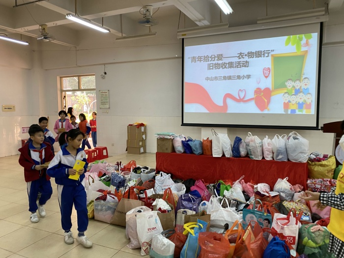 为积极响应中山市少工委倡议,弘扬爱心传播精神,提高垃圾分类、旧物化宝的环保意识、生态意识,引领广大青少年做力所能及的环保行动,1月6日下午,三角小学组织开展“青年拾分爱——衣?物银行”旧物收集活动,为困难人群送上温暖的问候。