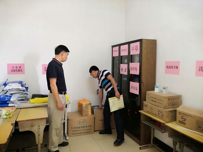 梁炳华督学先后视察了入校测温点,防疫物资储备室,教师办公室,学校教室、功能室、操场和后山,以及校园安全防范设施等等,详细询问了学校近期各项工作的开展情况,以及存在的现实困难与问题。过程中,何应文主任对防疫物资储备情况以及消防安全设施建设作了细致讲解;陈宝莹主任将当前学校的教育教学情况逐一反馈;王辉副校长就学校如何贯彻落实国家教育法律法规和三角镇教体文旅局重点工作、课程开设、特色建设等方面进行了简单的工作汇报。
