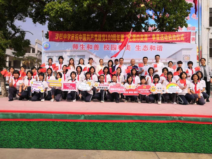 沙栏中学举行庆祝中国共产党建党100周年暨“红领巾奖章”争章活动启动仪式发布时间:2021-03-16 11:27 信息来源:本网站 浏览次数:0
