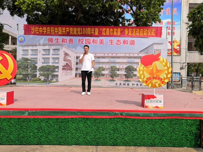 为庆祝中国共产党建党100周年,同时根据《中共中央关于全面加强新时代少先队工作的意见》和《中山市“红领巾奖章”实施细则》等文件精神,3月15日上午,三角镇沙栏中学开展了庆祝中国共产党建党100周年暨“红领巾奖章”争章活动启动仪式。