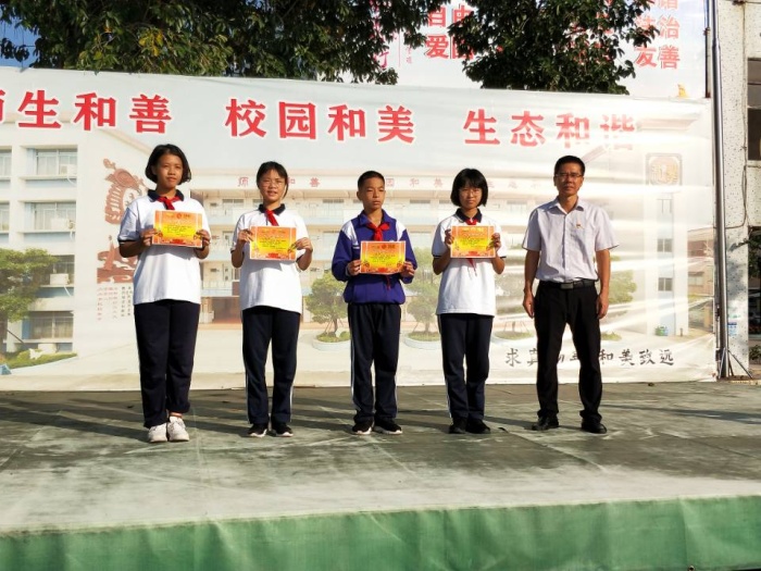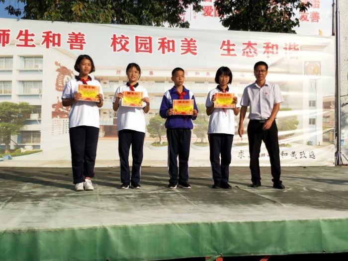10月12日,沙栏中学在升旗仪式之后进行了“沙栏中学文明班级”、“每月文明之星”、“迎中秋,庆国庆的爱心市场义卖活动——特色商铺”的颁奖。