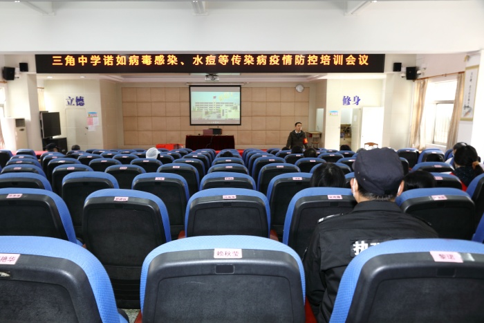 为了落实预防传染病宣传教育,提高冬季传染病疫情防控的重视和执行力,规范疫情防控工作,12月25日下午,三角中学在学校报告厅召开秋冬季传染病疫情防控培训会议,全校学生以及教职员工参加了会议。