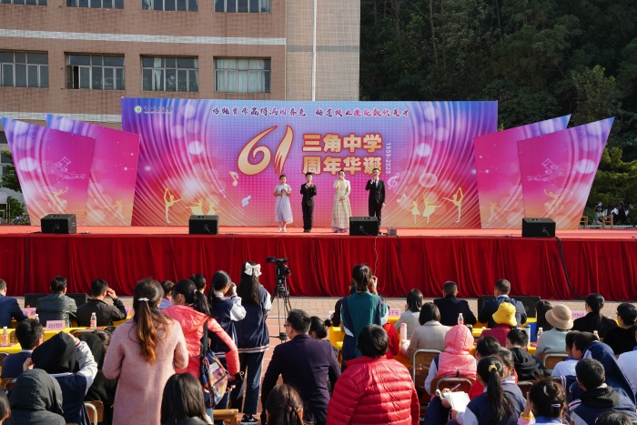 六十一载栉风沐雨,用梦想编织锦缎,六十一载跋山涉水,用信念写就诗篇,六十一载躬耕不辍,用敬业铸造丰碑, 12月4日,三角中学迎来建校第六十一个生日,在学校运动场隆重举行庆典大会暨奖教教学仪式。四方宾客欢聚一堂,共庆华诞。