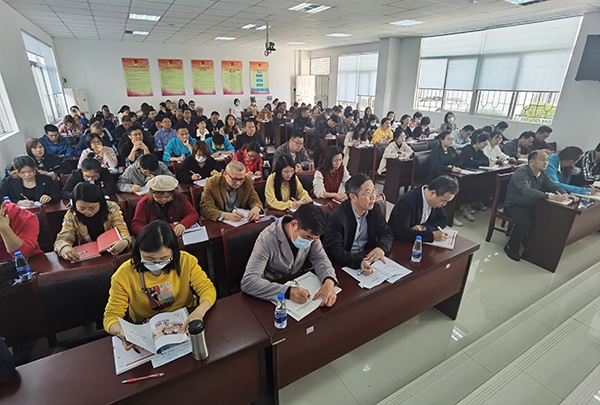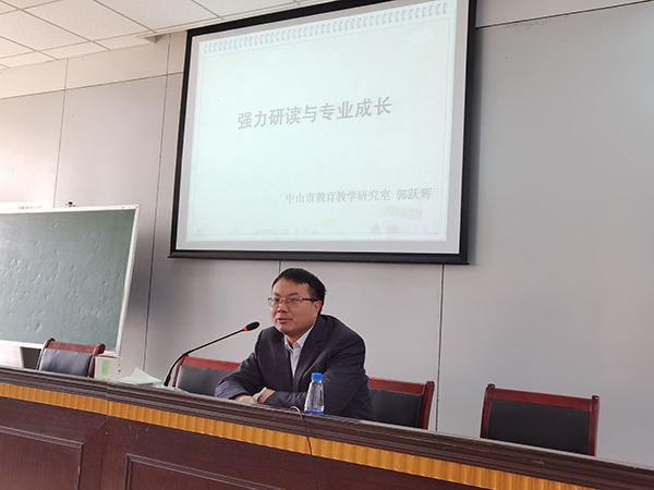 郭跃辉老师以“强力研读与专业成长”为主题,在讲座伊始,郭跃辉老师提出读书的三重境界:经验境界、理论境界和哲学境界。郭跃辉老师现身说法,旁征博引,深入浅出地阐明了三重境界的深刻含义,紧接着,郭跃辉老师结合自身专业阅读的实际,分享了翻译式阅读、重复式阅读、互文式阅读、摘抄式阅读、碎片式阅读、任务式阅读和聚焦式阅读等七种阅读方法,从理论到具体阅读方法全面地指导全体教师进行专业阅读,以促进全体教师的专业成长。