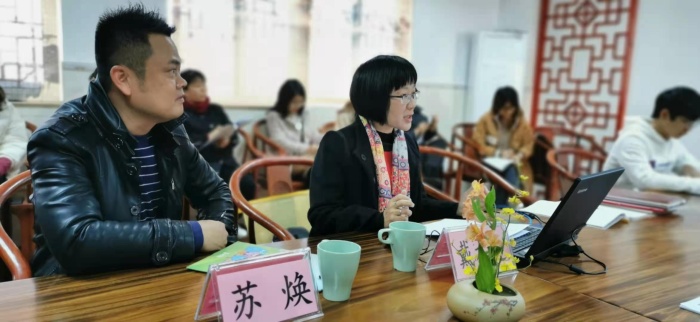 之后,新圩小学的朱华春副校长结合当前背景下班级特色建设问题进行了深入剖析,就“如何创建有特色的班集体”,解读了班级特色创建的理念、思想、途径和方式。从班级管理到班级建设的观念转变呼吁全体班主任要提升专业性发展能力,主动建设班级,以班级文化引领班级发展,最后还为班主任进行特色班级建设提供了各种思路,比如:经典引路、童话引路、寓言引路、让美文为青春导航目和吟诵美文等。