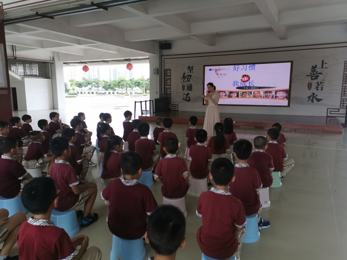 2020年9月18日上午第4节课,一楼8个班级的部分学生集中笃行堂参加了习惯养成的学习活动。