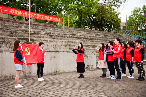 接着,全体党员教师齐聚党旗下,重温了入党誓词。“我志愿加入中国共产党……随时准备为党和人民牺牲一切,永不叛党。”铿锵恢宏的誓词,强烈震撼着在场的每一个人,一字一句,神圣而豪迈,铮铮誓言,体现了党员同志们对中国共产党的无限忠诚,坚定了入党使命,为初心而奋斗!
