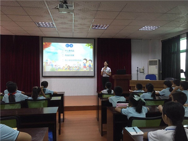 首先,学校组织五六年级学生到报告厅参加禁毒教育讲座。禁毒社工详细地介绍了什么是毒品,毒品的种类、特征以及毒品的危害。同时结合生活中真实的案例,用通俗易懂的语言向学生讲解禁毒法律法规和吸食毒品的严重不良后果,以血的教训、铁的事实,告诫学生们认清危害,树立自我保护意识。课堂最后,社工还进行了情景演练互动,使同学们认识到在社会生活中,要时时提高警惕,千万不以好奇为由侥幸去尝试,更不能受诱惑寻求刺激,面对毒品要坚决抵制,才不至于踏上违法犯罪的道路。