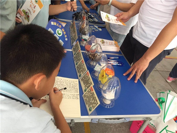 然后,学校组织各年级学生有序参观了禁毒“集智大迷宫”。天真无邪的孩子们好奇地看着毒品的分类介绍和样品,看着一个个因吸毒而面目全非的人,看着吸毒者因毒品而失去理性,导致家破人亡的景象图片,内心受到强烈的触动。活动现场还设有仿真毒品展示区域,禁毒社工向同学们讲解了毒品的危害,并派发禁毒宣传小册子,开展禁毒游戏、进行有奖问答。同学们看着毒品模型,近距离接触了人类社会的头号公敌 “毒品”,不时向在场的义工提问。义工们耐心地为同学们一一作答,并为他们详细介绍了禁毒知识,重点给他们讲解了毒品给个人、家庭及社会带来的严重危害。期间,有的同学边参观边做笔记,有的同学一边比划吸毒人员自断手臂的动作,一边讨论毒品的危害性。大家态度端正、认真听讲、仔细参观、心有所思,感到收获满满,对毒品的危害性有了更加深刻的认识。