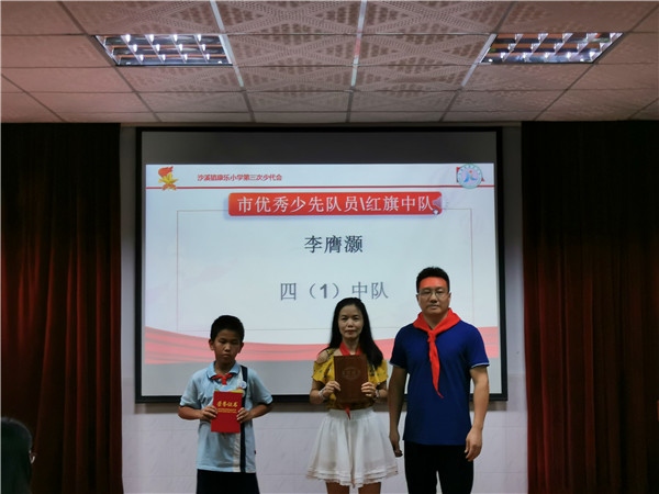 最后,大会还评选出表彰一批红旗中队、优秀辅导员和优秀队员,并颁发证书以表鼓励。至此,沙溪镇康乐小学第三次代表大会在新一届大队委员的敬礼中,在队员们的呼号声和退旗曲中,本次大会正式拉下帷幕。但这也意味着新的开始。对队员们和新一届的队委员们来说,手臂上的标志不仅仅是一份荣誉,更是一份责任,相信康乐小学的少先队会在他们的带领下,在全体队员们的努力下,走向下一个辉煌。