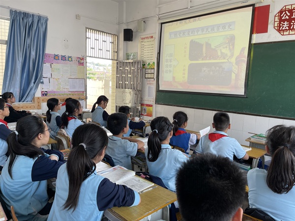 3月17日下午,各班组织开展“学党史、知党恩、跟党走”主题班会。班会课上,首先班主任老师向学生们讲解了建党背景、共产党在中国的革命建设、改革开放的丰功伟绩等。接着,通过视频、图片让同学们了解中国共产党艰苦卓绝的奋斗历程。然后,同学们交流讨论,踊跃发言,分享收获。学生们深深感悟到“没有共产党就没有新中国”、“没有共产党就没有今天的幸福生活”,让他们更加坚定了热爱党、跟党走的信念。最后,全体师生齐唱国歌,增强了学生的爱国主义情感,坚定从小听党话,跟党走的信念。