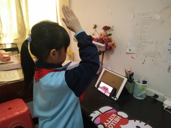 本次主题班会课分为两个环节。第一个环节,是在线举行升国旗仪式。在这特殊的日子里,乐小学子们怀着激动的心情,穿上整洁干净的校服,戴上鲜艳的红领巾,认真观看天安门广场的升旗仪式,并敬上最标准的队礼,表达自己浓浓的爱国情。第二个环节,各班班主任老师组织学生观看网络课《你了解清明吗?》,让同学们了解清明节的相关知识。同学们通过观看清明节教育视频,了解了清明节的起源、时代意义、历史发展和节日习俗由来等等。随后,老师还介绍了革命先烈们的英雄事迹,激发大家要向革命先烈们学习,在疫情期间提倡同学们线上向革命先烈们鞠躬敬礼。