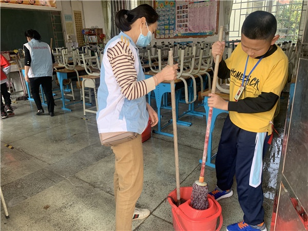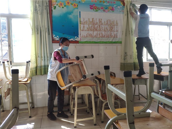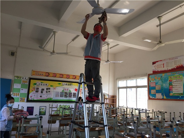 沉寂了一个月的龙头环学校校园里,突然热闹起来了,每一间办公室和教室都有忙碌的身影,老师们、家长们、学生们纷纷开始了细心的清洁工作,对楼道内、楼梯间、学生教室、教师办公室等场所进行全面清洁消毒,并保持教室开窗通风,确保清洁不留死角、不漏盲区。做好防疫消毒工作,为迎接开学的到来做好准备。