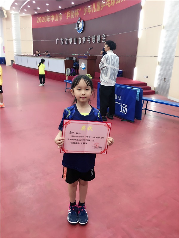 12月26-27日,2020年中山市“乒协杯”少年儿童乒乓球公开赛在中山市乒乓球馆隆重举行,被誉为龙头环学校“女将”乒乓球选手的杨贝贝同学,凭借出色、沉着、稳定的发挥,经过激烈的角逐,喜获“乒协杯”少年儿童组乒乓球公开赛第一名的优异成绩!