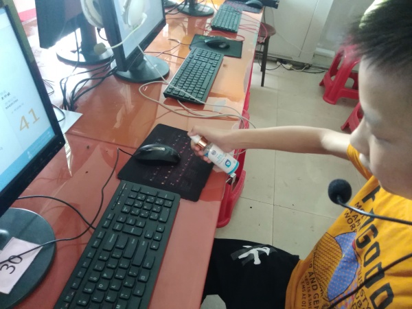 考前两周,后勤处对电脑房进行了集中消毒。同时为电脑房配置了消毒酒精,每使用一次电脑,就用喷雾酒精对键盘、鼠标、耳麦进行一次消毒。为了防止聚集,按电脑机位容量的50%安排学生数,隔位就座。在开空调的同时,又打开电脑房两边的窗户通风。最大限度的防止学生交叉和聚集。