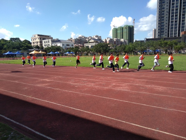 下午进行的是长跑测试,艳阳当空,考场上热浪滚滚,考试在15:30分开始,炎热的天气影响了同学们的发挥,有一位同学出现了中暑头晕的症状,及时让现场医生查看,并妥善办理补考手续。其他同学运动状态不错,考后初步统计,满分的同学占到75%以上。