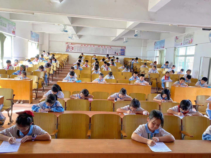瞧!一年级的孩子们,他们一个个虽然年纪小,但个个卯足那股认真劲,一笔一笔地认真答题,那隽秀的字迹令人赞叹不已!