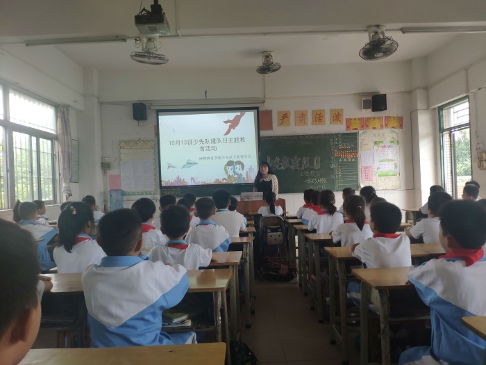 中国少先队建队日于1949年10月13日确立,2020年10月13日是第71个少年先锋队建队日。神湾神舟学校开展了“重温历史 争做新时代好队员”主题队日之系列活动。10月12日上午九时许,利用周一的晨会时间,全校师生在校操场举行主题队日教育活动,全体队员齐唱中国少年先锋队队歌,了解队史,重温入队誓词。