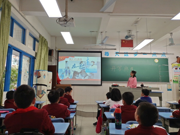 奋楫当先启新程,乘风破浪正远航。新学期,新起点。为激励全体师生振奋精神,锐意进取;同时也向同学们展示丰富多彩的校园生活和学习带来的快乐,激发同学们对校园的向往,2021年2月21日上午,石岐第一小学举行了不一样的开学典礼,典礼由梁小玲副校长主持,校领导成员以及全体师生参与了本次活动。出于防控疫情安全考虑,全体师生在教室利用网络直播的方式观看了此次典礼。典礼分四个篇章进行。
