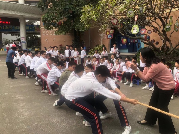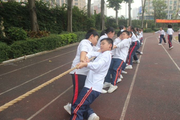 闭幕仪式后,全校分年级开展拔河比赛。比赛采取三局两胜单败淘汰制,现场分组抽签对阵,每班各派出15名男生,15名女生参加,每场后可更换人。现场比赛激烈,选手们用尽全力,加油声此起彼伏,整个校园热闹非凡!经过激烈角逐,一4班、二5班、三2班、四3班、五1班、六5班分别荣获年级冠军。