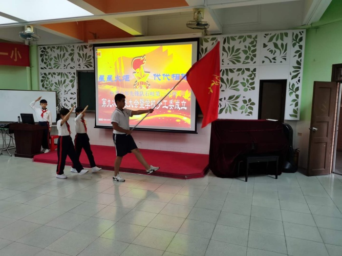 “星星火炬·代代相传”。10月14日下午,石岐第一小学阶梯室歌声嘹亮,队旗飘扬,一张张笑脸,唱着队歌,行着队礼,胸前的红领巾映衬出节日的喜悦!石岐一小的少先队员们怀着激动的心情迎来了自己的盛会——第九届少代会暨学校少工委成立大会!