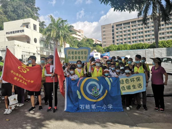 7月11日上午,石岐一小组织本校教师志愿者和亲子义工队共50多人,参与了石岐区文明城市创建大会战志愿服务活动。
