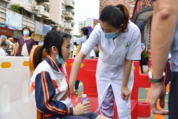 庄严的升旗仪式后,学校举行了一个特别的感恩仪式。郑结霞校长邀请了学校的校工、保安和饭堂工作人员与全校师生一起,接受全校学生的诚挚敬礼。郑校长说:学校后勤工作人员为了复学做了大量的工作,正是有了全校老师及后勤工作人员的辛勤付出,才换来今天来之不易的学习时光,提醒同学们一定要更加自律,懂得珍惜与感恩。