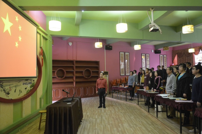 庄严的国歌声奏响后,党员教师重温入党誓词,全体教师重温《体育路学校教师宣言》,以饱满的热情迎接新学期。会上,孙校长首先感谢全体教职工的辛勤付出,总结表彰假期各部门好人好事。