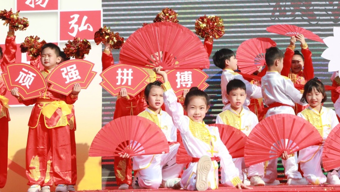 改革开放以来,中国运动员们靠顽强拼搏、奋勇争先的精神获得了多项世界冠军。三四年级的同学以中国运动健儿为榜样,向大家展示“顽强拼搏 奋勇争先”的体育精神。中国运动健儿们在各项比赛中夺取冠军、为国争光的前进脚步永不停歇,激烈着同学们不断前进。看,同学们挺拔的身姿,矫健的步伐,尽显勇往直前的风采!