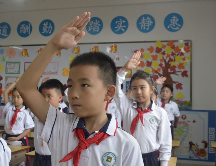教室里,各班的主题队会开展得有声有色。中队辅导员带领队员们重温入队誓词,向队员们讲述少先队的发展历程,以及中国女排等先锋人物的榜样力量。飘扬的红领巾,崇高的队礼,“少先队员”是星空体育最骄傲的名称,“星空体育是共产主义接班人”是星空体育最嘹亮的歌声。