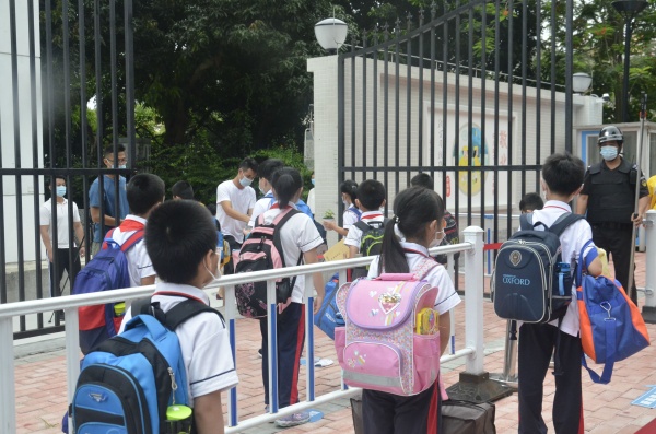 “同学们早上好!欢迎回校!” 学校行政、值日教师在校门口热情迎接返校的“萌娃们”!在学校教师、家长义工队的引导下,同学们迈着轻快的步伐,按照学校德育处的《返校复学一日常规》的培训指引和墙面标识,在相应的年级通道间隔1米排队,经测量体温、消毒双手后,有序进入校园。一个个小身影有序前进。教室门口,老师们带着欣喜与期待相迎,他们为同学们进行晨检——消毒双手、复测体温,守好校园防疫的每一道防线。终于又坐在期盼已久的教室中,孩子们的脸上难掩雀跃之情!
