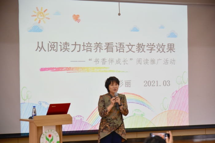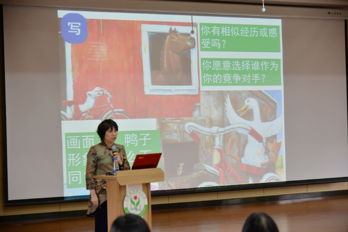 活动分两部分进行,首先是中山市教师发展中心郑彩丽老师做了题为《从阅读力培养看语文教学效果》的专题讲座。郑老师首先从上学期三年级期末测验卷中的一道题目着手,紧接着呈现石岐街道二年级和四年级阅读状况调查问卷,再回归语文课标,表明目前孩子们的阅读状况两极分化,仍有很大的提升空间。郑老师指出阅读力就是学习力,学科语文的教学效果必然要指向阅读力,并从三个方面结合具体的实例详细阐述如何通过提高阅读力提高语文教学效果。无限相信书籍的力量,通过阅读为孩子构建丰富的社会,让孩子探索、体验、认知大千世界,建立孩子与大千世界的联接。