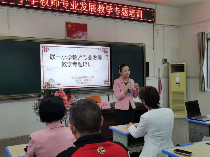 教师专业发展是学校稳步发展的关键。联一小学一直坚持“以教学为中心,用质量促发展”的教学理念,坚持全体教师专业发展工作的开展。根据2021年学校工作计划,在陈丽娥副校长统筹下,2021年3月1日下午4:30,联一小学邀请了广东省特级教师、坦洲镇实验中学高艳玲副校长在学校多媒体室为全体教师开展一场“教师专业(教学)发展”专题培训。