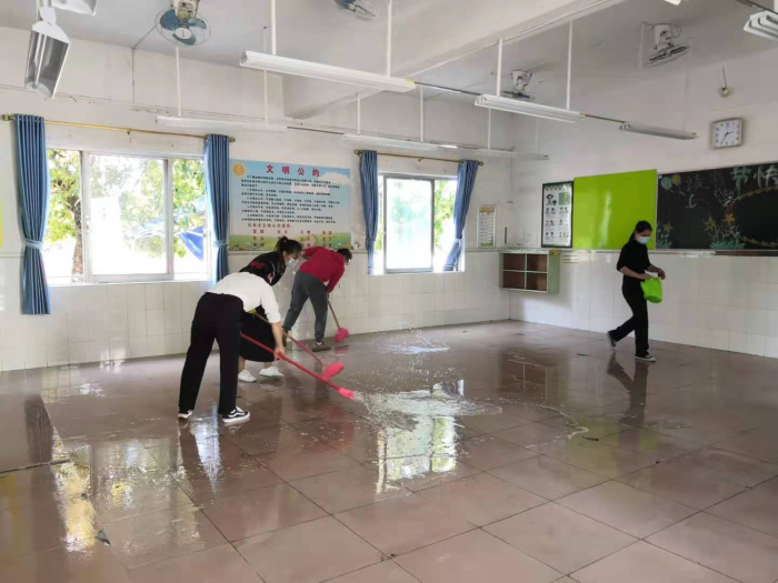 开学前2天,学校组织全体教职工及部分家委对校园环境进行全面清洁消毒,彻底消除卫生死角,并请专业人员进行灭蚊消杀工作,确保校园环境整洁。