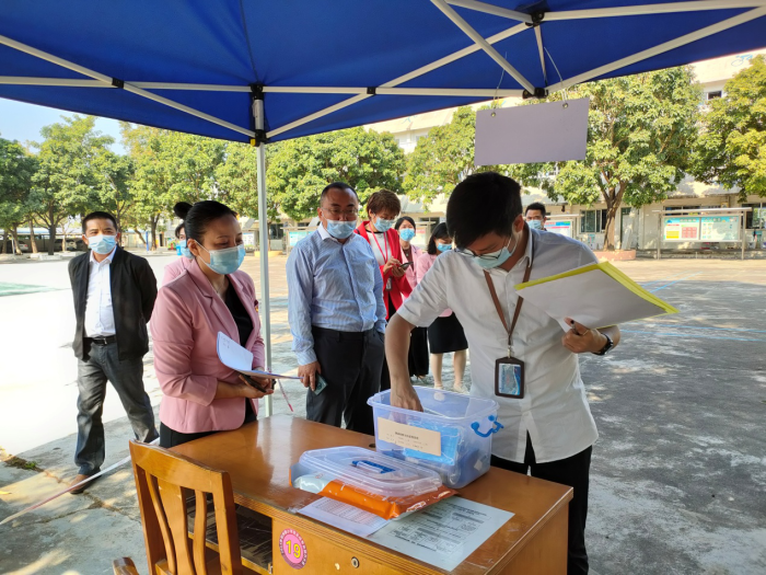 2月21日上午,联一小学开展新冠肺炎防控开学应急演练。演练前,总务处就疫情防控演练召开专项会议,全校教职员工认真学习新冠肺炎防控校园应急处置预案,熟悉演练流程,掌握各自职责。演练中,老师们分工合作,依次模拟了学生进校管控,课堂突发情况处置,学生离校三个场景。在学校疫情防控小组的精心组织下,此次演练各部门反应迅速、井然有序进行,有效提高了教师们疫情防控应急处置技能,为顺利开学建立安全壁垒。